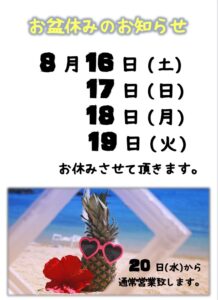 UNO 夏季休業のお知らせ